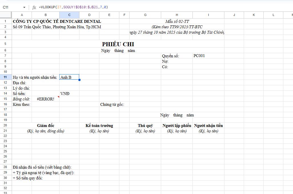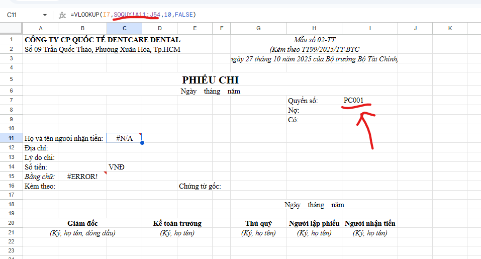 Tôi đã sử dụng hàm VLOOKUP, kết quả cứ báo lỗi N/A. Vẫn chưa sửa được lỗi sau nhiều lần kiểm tra. Nhờ bạn chỉnh dùm ô có công thức trong sheet Pchi. Cảm ơn