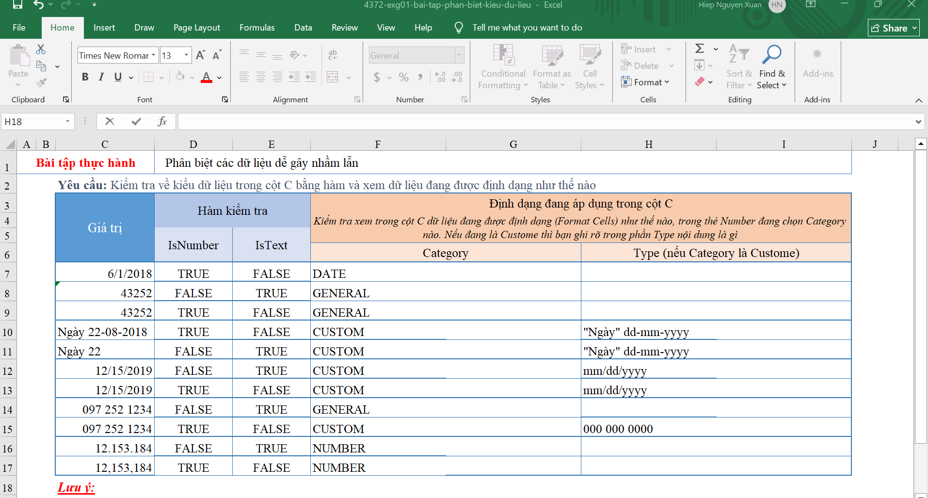 Dạ vâng Gitiho xin giải đáp thắc mắc của Anh/Chị là ở bài này sẽ ra đáp án giống nhau nhưng nếu ở B12 nội dung là “Lê Văn Tiến” thì sẽ không ra đáp án như vậy ạ.