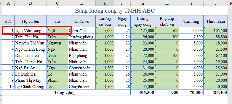 Để tách họ và tên, Anh/Chị có thể tham khảo nội dung sau ạ: https://gitiho.com/blog/huong-dan-4-cach-tach-ten-trong-excel-de-tach-rieng-ho-ten-va-ten-dem.html