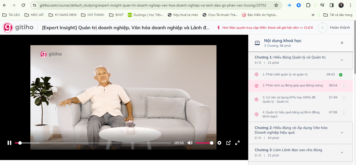 Clip có nói về CHẤT LƯỢNG KINH DOANH. Ban Điều Hành Gitiho nên xem Khóa học này.