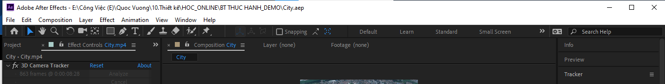 À em nhớ click và cái 3d camera tracker ở mục effect control nha