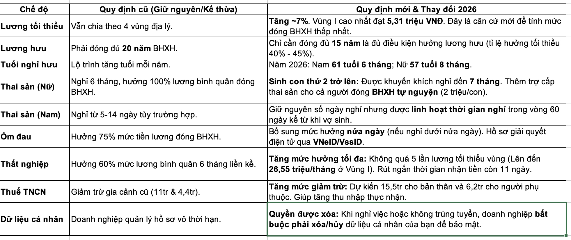 Chào cô, em xin phép hệ thống lại những luật mới năm 2026, nhờ cô xem và góp ý thêm những phần nào còn thiếu trong bảng sau với nhé. Em cảm ơn cô..png)