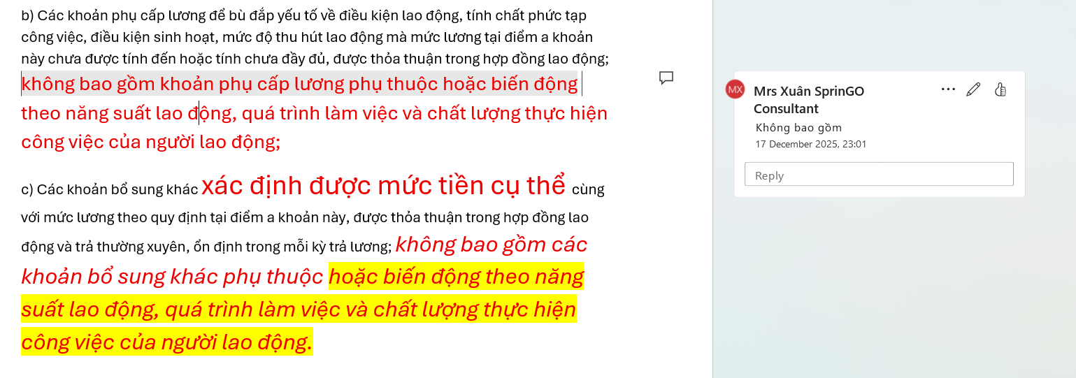 b) Các khoản phụ cấp lương để bù đắp yếu tố về điều kiện lao động, tính chất phức tạp công việc, điều kiện sinh hoạt, mức độ thu hút lao động mà mức lương tại điểm a khoản này chưa được tính đến hoặc tính chưa đầy đủ, được thỏa thuận trong hợp đồng lao động; không bao gồm khoản phụ cấp lương phụ thuộc hoặc biến động theo năng suất lao động, quá trình làm việc và chất lượng thực hiện công việc của người lao động;