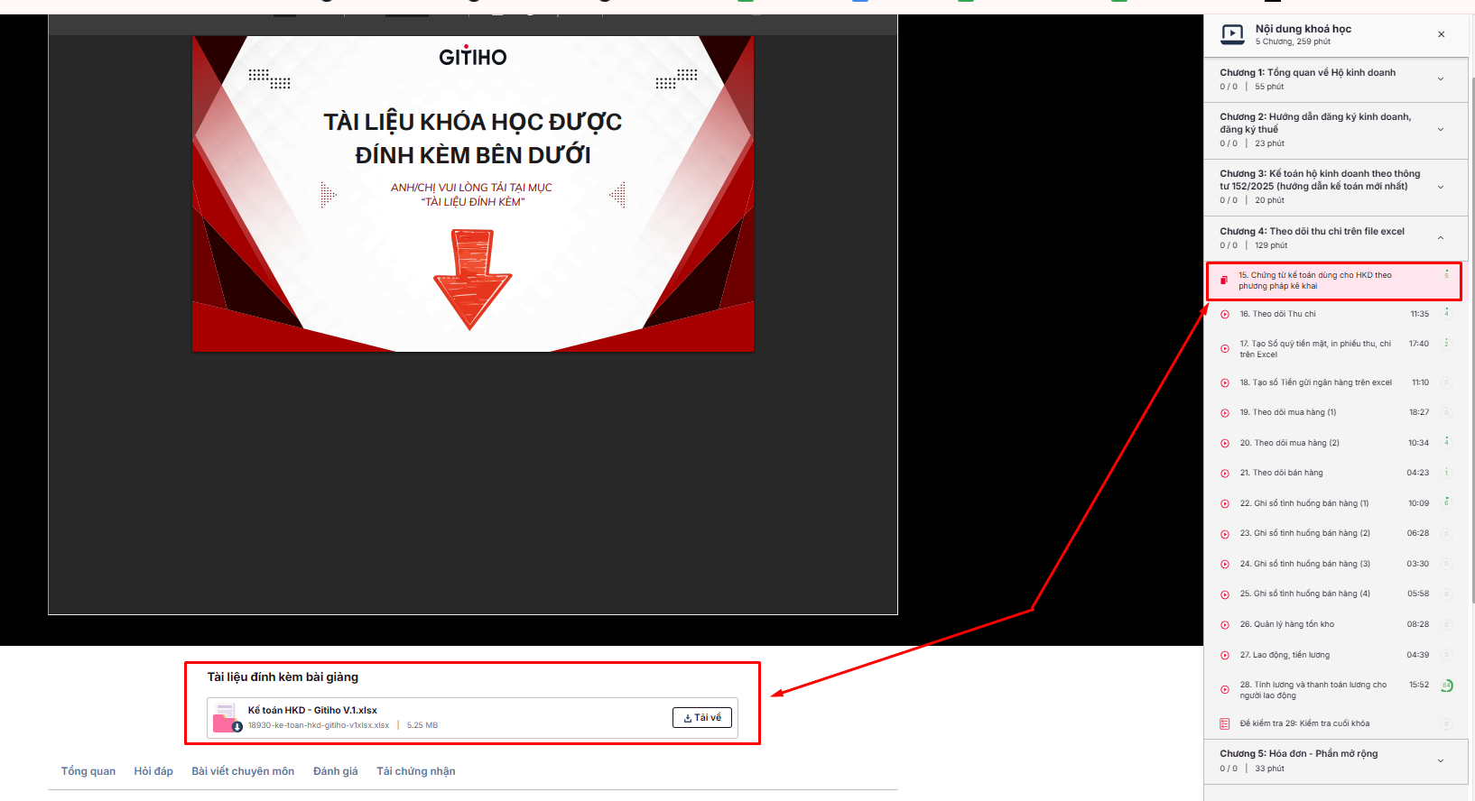 Dạ vâng Gitiho xin giải đáp thắc mắc của Anh/Chị là tài liệu khóa học nằm ở bài 15 chương 4 này ạ