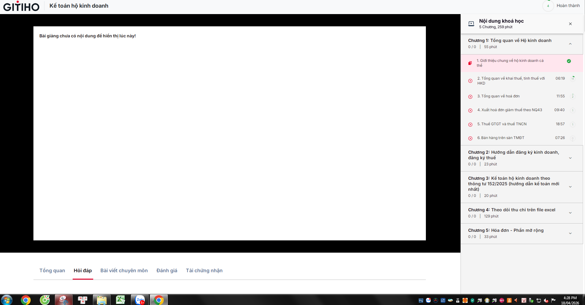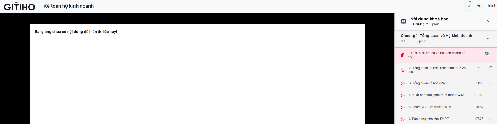 Cho em hỏi sau khi em học video xong, muốn xem lại video không được ạ. Em vừa xem xong giới thiệu chung về hộ kinh doanh, muốn xem lại thì không xem được ạ