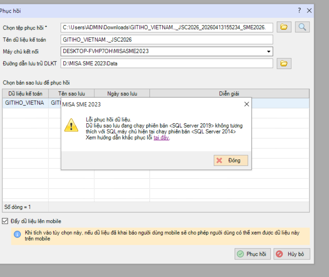 và back up dữ liệu giúp mình, mình chưa làm đc ạ