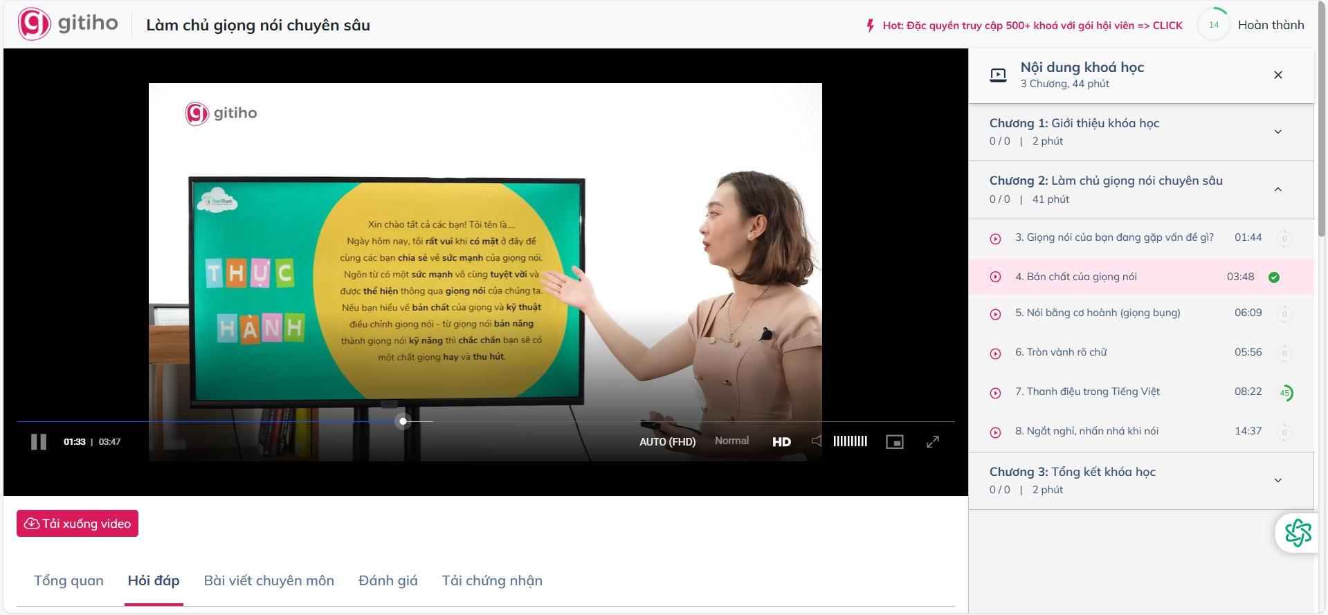 Anh/Chị có thể kiểm tra lại đường truyền mạng, thay đổi trình duyệt hoặc giảm chất lượng video xuống để theo dõi bài giảng ạ.