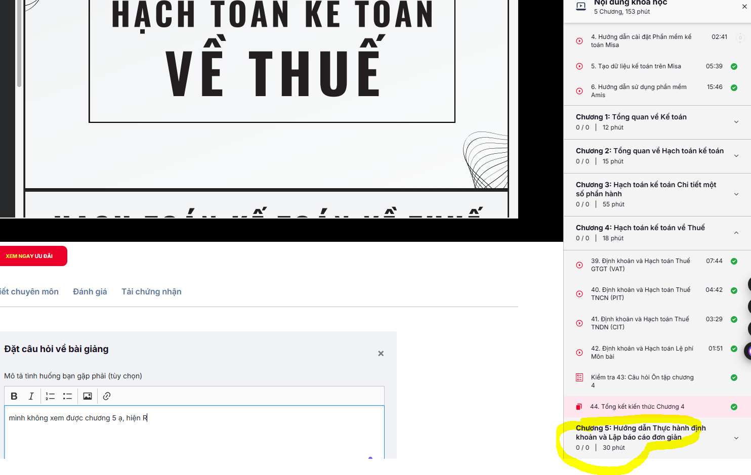 Dạ vâng Gitiho xin giải đáp thắc mắc của Anh/Chị là Anh/Chị bấm vào và kéo xuống sẽ thấy các bài giảng của chương 5 ạ.