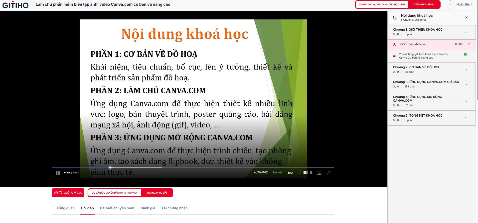 Dạ vâng Gitiho vẫn thay video hoạt động bình thường ạ. Có bài 2 là bài quà tặng gửi kèm thì sẽ chỉ có file và không có video bài giảng. Còn lại sẽ có ạ.