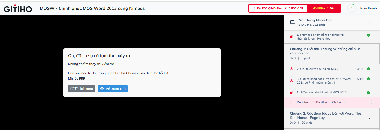 Em không truy cập được làm đề kiểm tra Chương 1 là vì đâu ạ?