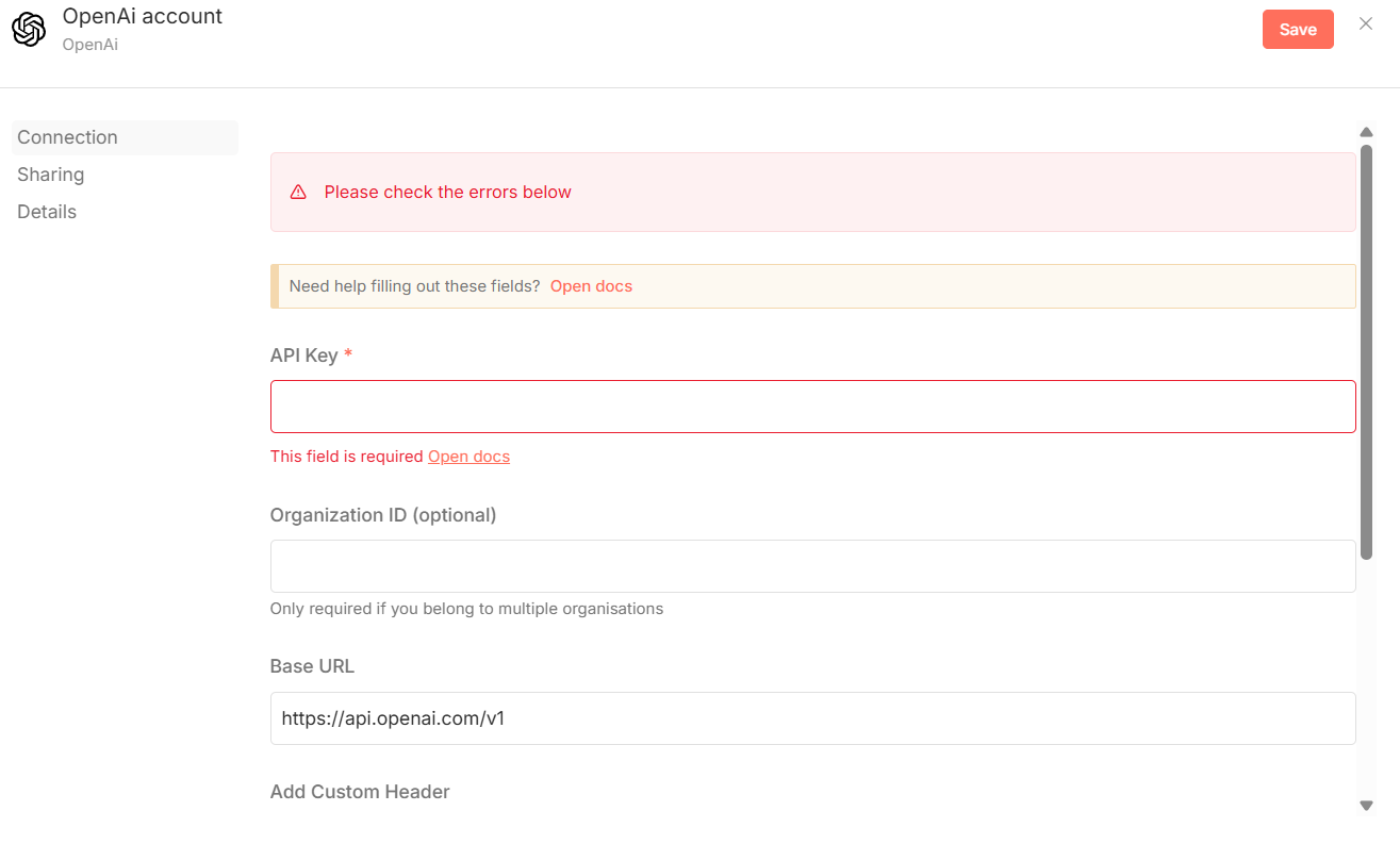 Cách 1: Bạn tìm trên màn hình cài đặt node này có chỗ nào liên quan đến “free credit” không, đó là n8n bản dùng thử 14 ngày họ sẽ cho mình dùng thử API của OpenAI. Nếu có thì bạn sử dụng.