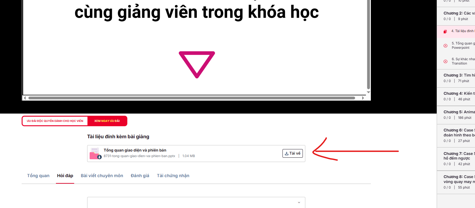 Dạ vâng Anh/Chị vui lòng ấn vào “Tải về” nằm ở ngay dưới bài giảng ạ!