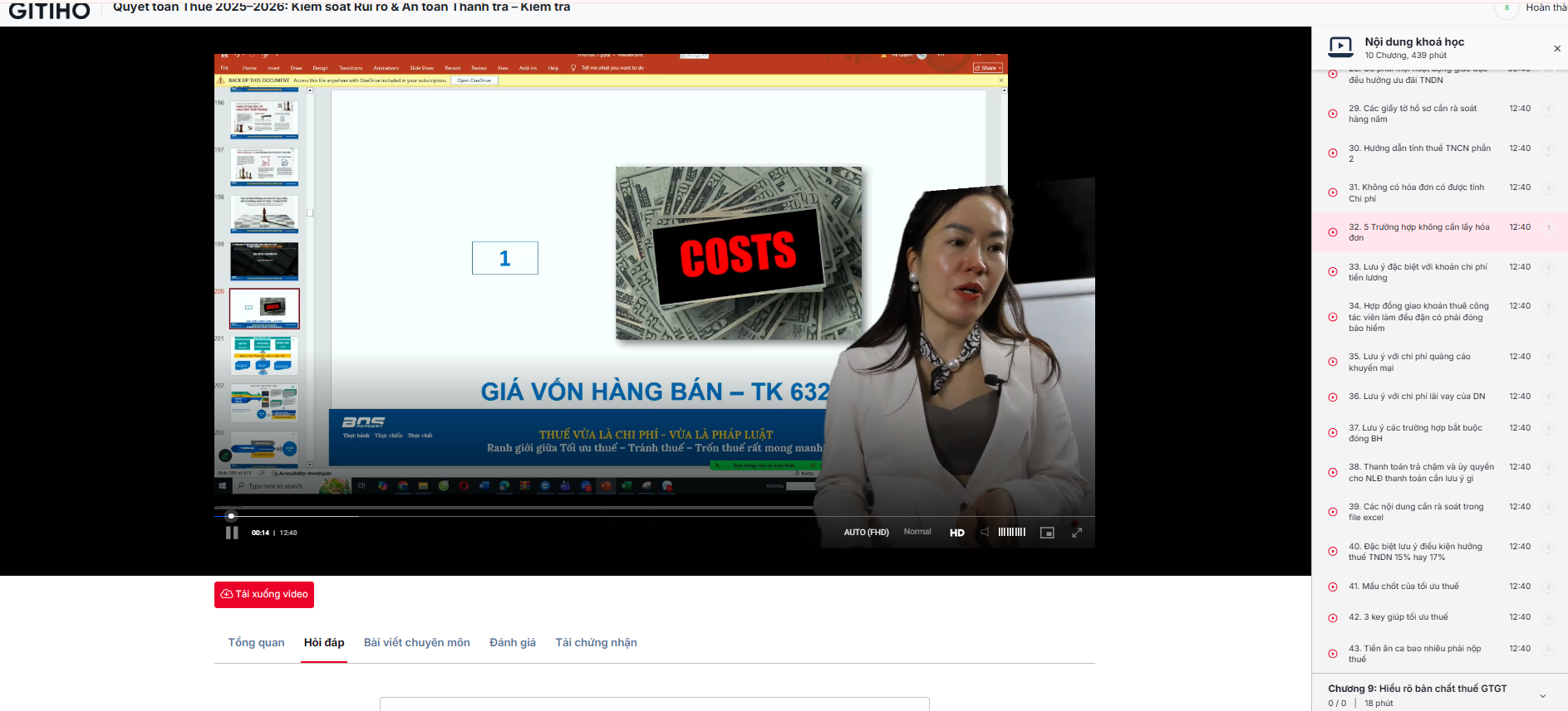 Điểm nổi bật của khóa học là bộ tài liệu thuế thực chiến, được xây dựng và sử dụng trong quá trình làm quyết toán và tiếp đoàn thanh – kiểm tra, áp dụng trực tiếp cho giai đoạn 2025–2026.