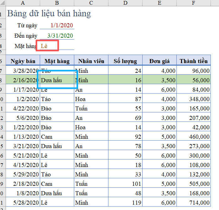 Tôi đã sử dụng hàn =AND($A7>=$B$2,$A7<=$B$3,$B7=$B$4) như hướng dẫn nhưng kết quả ra lại bị sai như sau: .png)