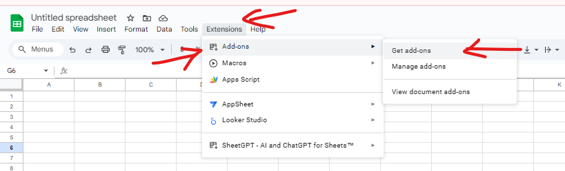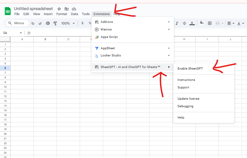 Bước 3: Chọn Extensions → SheetGPT → Enable SheetGPT