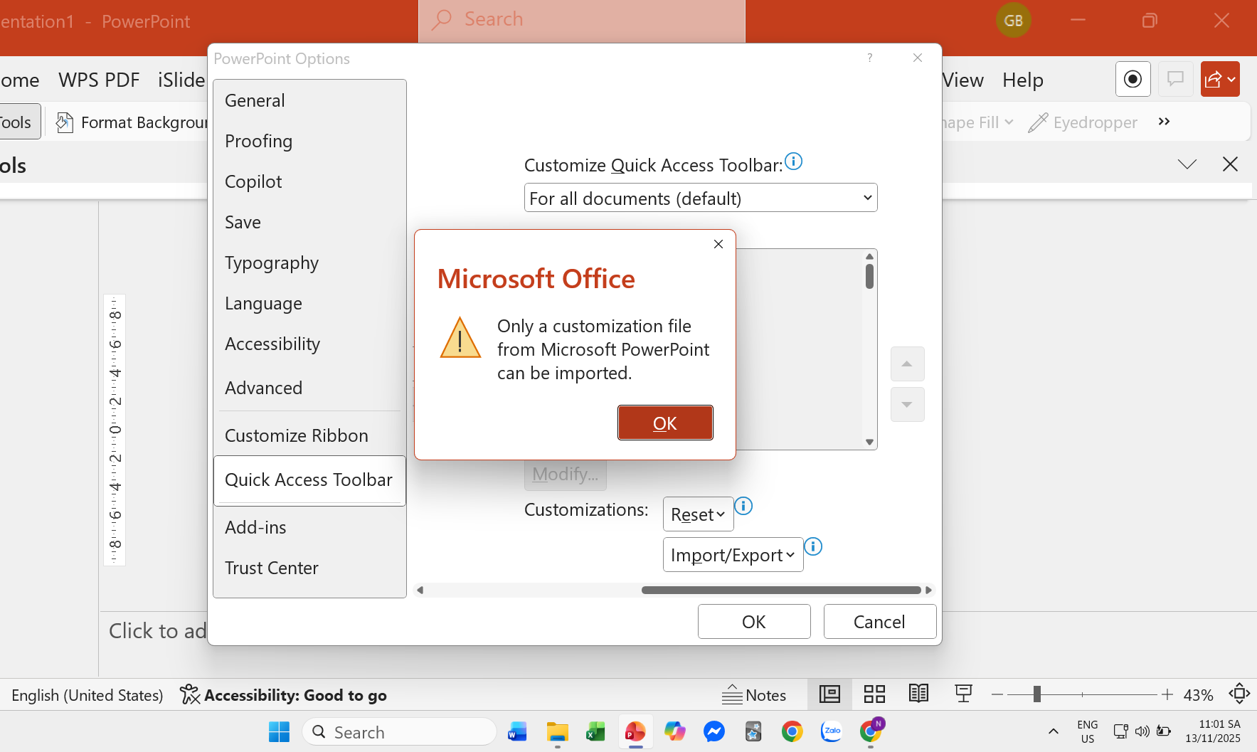 em ko thể import cái quick access toolbar của thầy được ạ.