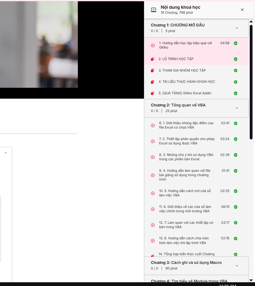 Mình đã học được 57%. Vẫn đang học tiếp. Đánh giá sơ: bài học dễ hiểu, chi tiết, giọng thầy ko bị buồn ngủ. Nội dung rất hay và cần cho các bạn làm việc trên nền tảng Excel. Mình sẽ đánh giá lại sau khi hoàn tất khóa học. Cám ơn thầy Dương Mạnh Quân và Công ty Gitiho. Sẽ tiếp tục ủng hộ các sản phẩm khác sớm