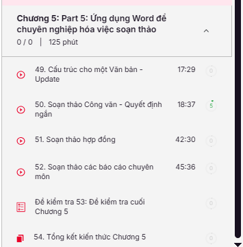 cho mình hỏi chương 5 sao không có mục nào trong đó học vậy ạ. Phần 5: ứng dụng word để chuyên nghiệp hóa việc soạn thảo